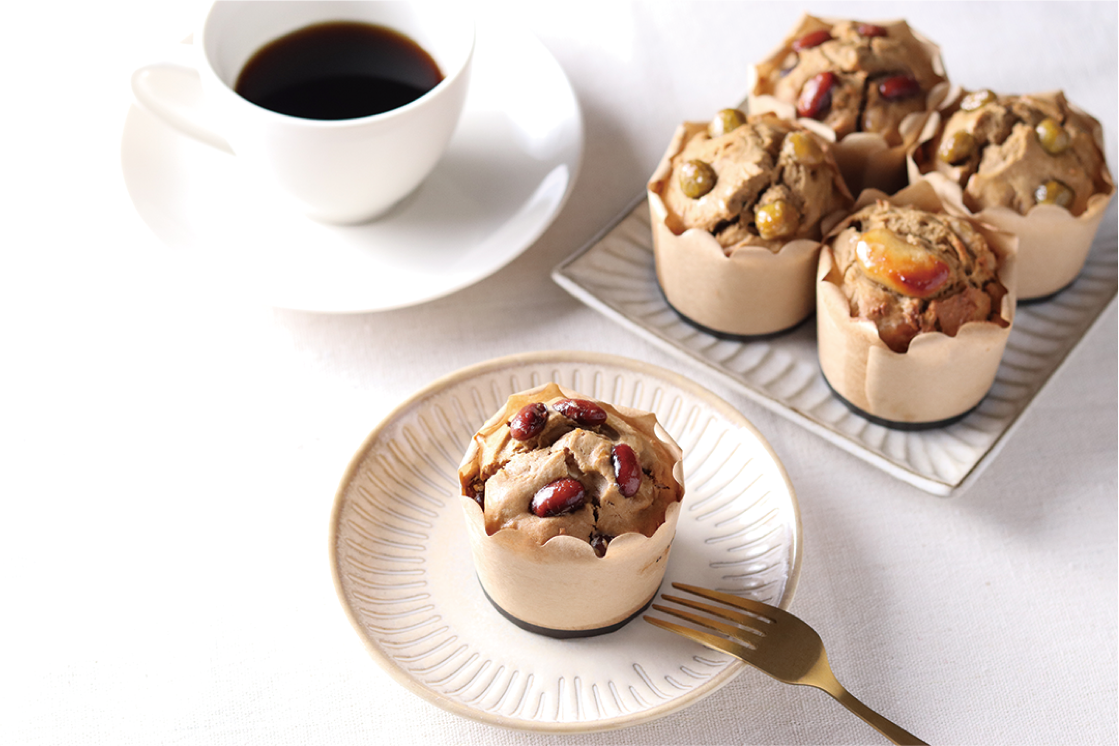 | 「三色豆のコーヒーマフィン」で使用 | 「紅茶のシフォンサンド」で使用 |